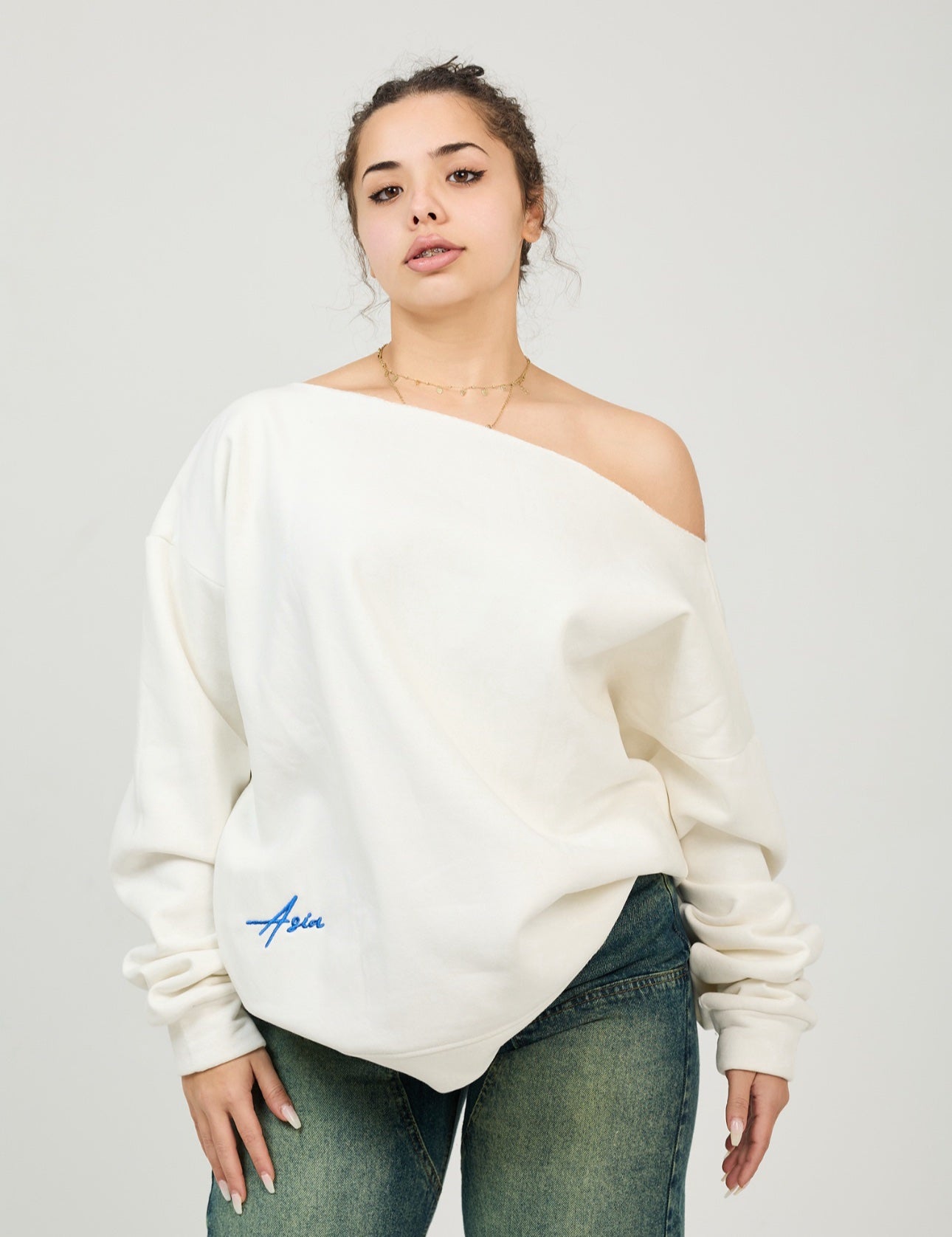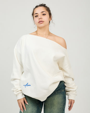 White off- shoulder sweater